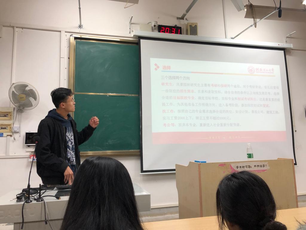 闫昱升同学根据自身实际,四年成绩始终名列前茅并成功推免保研经历与同学们进行分享,以“如何更好适应并过好大学生活”为主题与所有新生深切互动;田梦瑶同学以“做好规划,过好科研学习生活”为主题与新生分享读研点滴,让新生深刻了解硕士研究生的学习生活,明确学习目标,做好学习规划,为考研做好思想与行动基础。