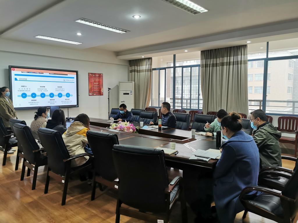 会上,罗义淞副书记对饶蠡副书记一行的到来表示热烈的欢迎,并对项目备赛进展工作做了简要介绍。随后,由负责学生进行模拟路演答辩。