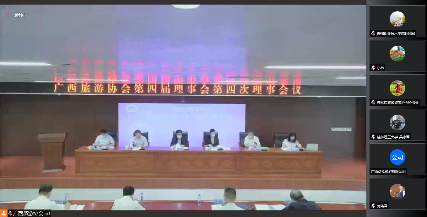 2022年4月29日,beats365亚洲版吴忠军院长带领学院老师参加了广西旅游协会第四届理事会第四次理事会线上会议。广西旅游协会第四届理事会第四次理事会议在绿城南宁举办,自治区文化和旅游厅领导,在邕的会长、副会长、理事单位代表以及住在南宁市的代表参加线下会议,柳州、桂林、梧州、百色、钦州、防城港、北海、玉林、贵港、河池、来宾、崇左的会长和理事单位代表、教育分会、旅行社分会、景区分会、导游分会、温泉分会的会长、秘书长、副秘书长以及各高校代表以线上形式参会。