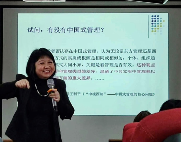 讲座上,江老师积极与学生互动交流,生动有趣地讲授关于中国文化和中国式管理的知识。江老师以中国古代经典哲学著作《道德经》开题,带领同学们理解和感悟中国古代文化的智慧;随后,江老师通过与西方管理的对比,详细阐述了中国式管理的思维方式和管理模式。