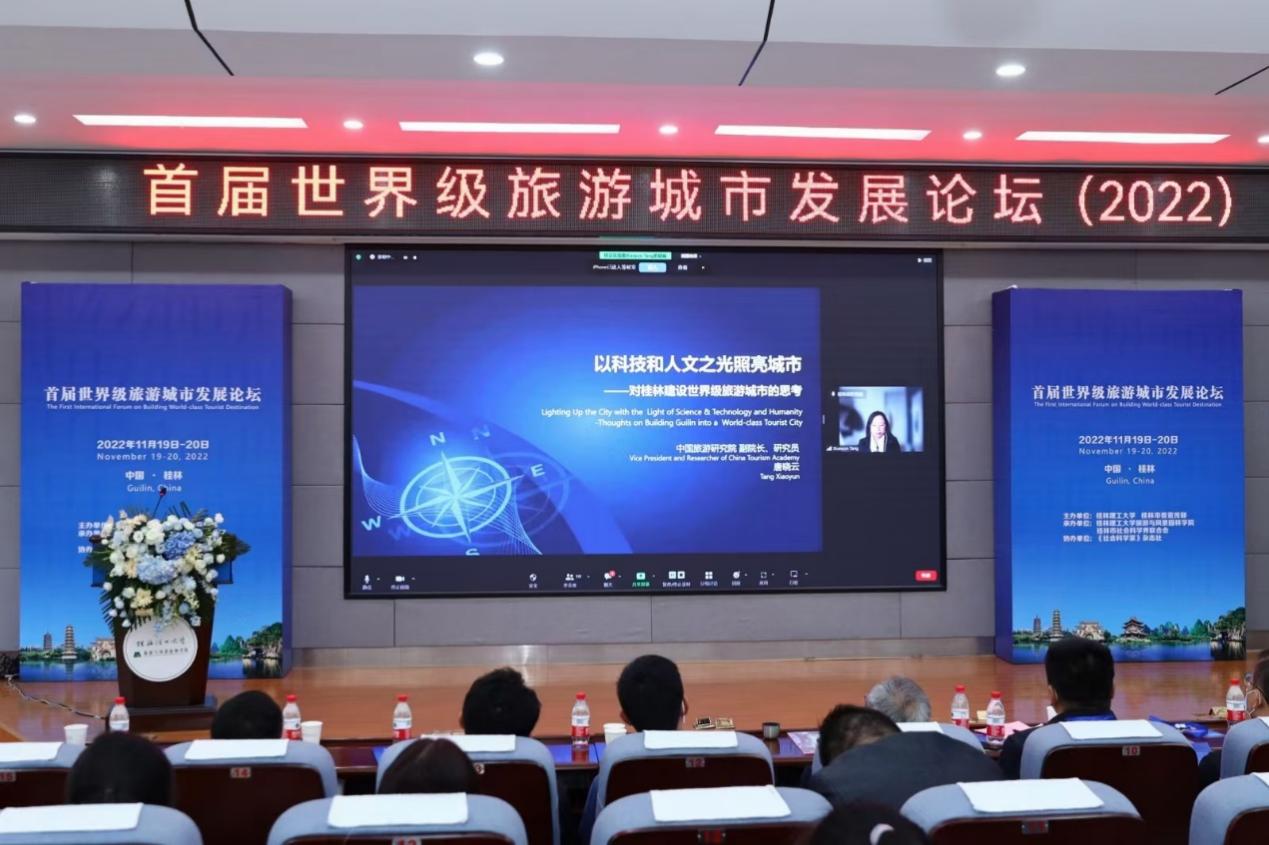 2022年11月20日,在桂林市委宣传部和beats365亚洲版联合主办的“首届世界级旅游城市发展论坛”上,中国旅游研究院副院长唐晓云研究员以“以科技和人文之光照亮城市——对桂林建设世界级旅游城市的思考”为题做主旨演讲。