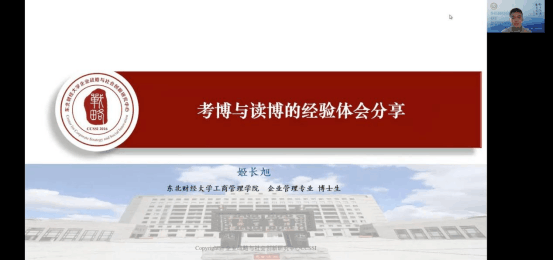 为进一步提高beats365亚洲版硕士研究生的考博积极性,明确考博目标,对考博有一个更全面、更具体的规划。2022年12月14日,beats365亚洲版旅游与风景园林学院通过腾讯会议开展了考博经验分享交流会,特邀了2019级优秀毕业学长姬长旭进行经验分享,目前姬长旭学长就读东北财经大学工商管理学院企业管理专业博士,本次交流会由王成圆老师主持,部分教师及全体研究生参加活动。