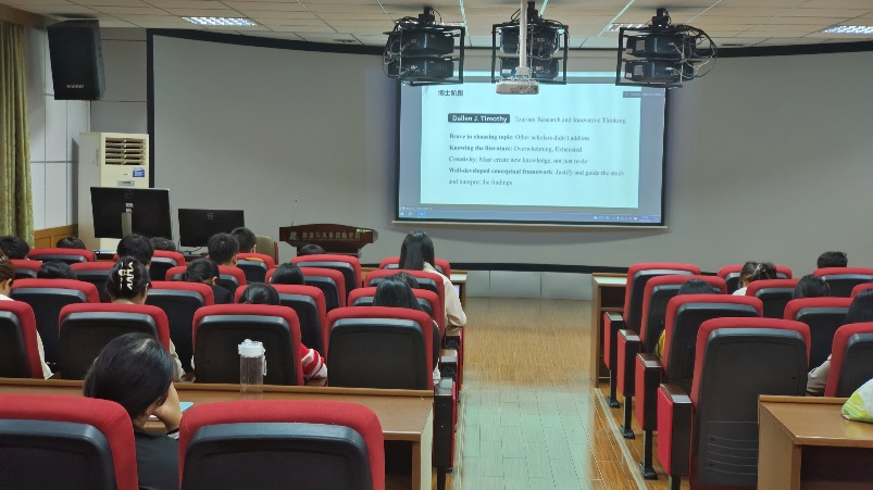讲座中,卫银栋老师结合自身本、硕、博期间学习经历,讲述了研究生要学会创新知识,创造知识,要学会研究思维的转变。指出旅游规划是横向研究,而学术性研究是纵深式研究,大家要学会从横向到纵深式的转变,进行相关研究,并提高自身的写作锻炼,思维锻炼,口头表达能力。此外,卫老师还讲解了自己博士阶段参加旅游学刊年会,参与国家自科课题等研究经历,为研究生学业发展提供了方法和思路。