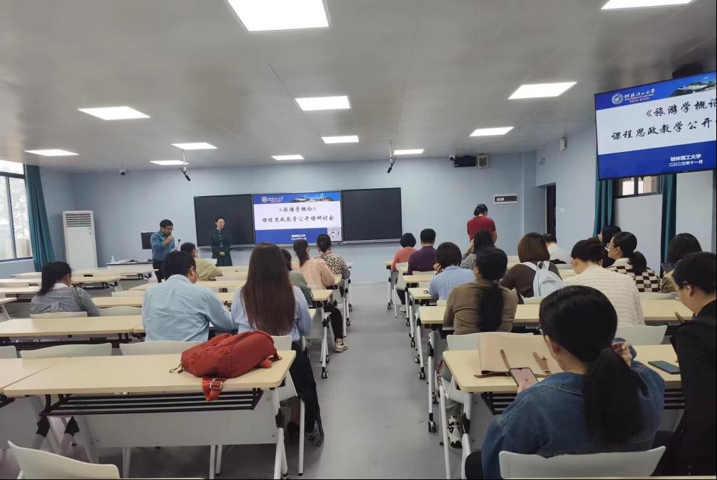 2023年11月9日下午,侯玉霞老师在雁山校区教6楼301教室举行了《旅游学概论》课程思政教学公开研讨课,此次公开课及研讨活动旨在加强课程思政教学经验交流及推动课程思政教学建设与改革,进一步落实课程育人功能,提高学校人才培养质量。