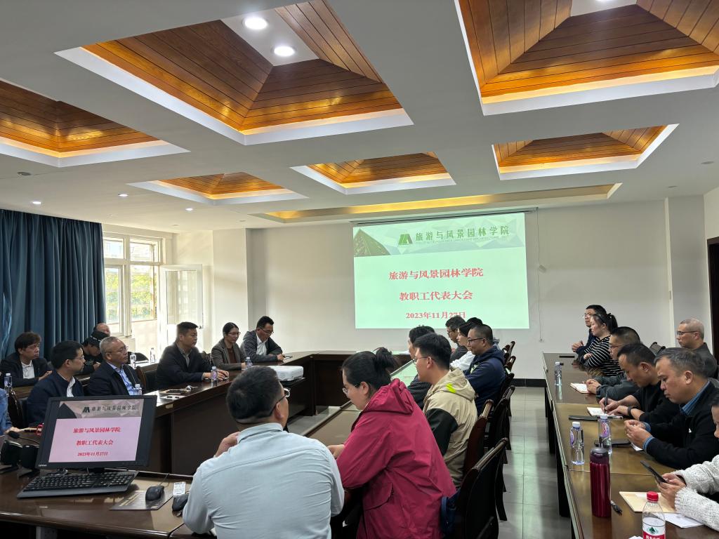 11月27日下午,beats365亚洲版教职工代表大会在屏风校区07407会议室成功召开。本次教职工代表大会的议题是审议《旅游与风景园林学院岗位设置聘用与考核工作实施办法》以及开展师德师风专题讲座,各教研室正副主任以及高级职称代表出席了本次会议。会议由学院党委书记王璐主持。