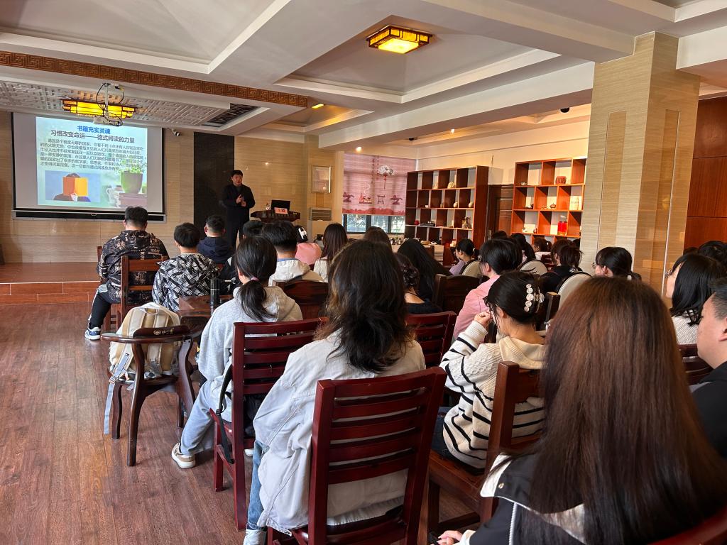 为了激励beats365亚洲版学生多读书,读好书,营造良好的学习氛围,3月12日上午,学院党委书记王璐以“书籍充实灵魂、脚步丈量世界、专业成就梦想”为主题在雁山校区4栋教学楼1楼茶艺室开展专题讲座,学院各年级50余名学生参加。
