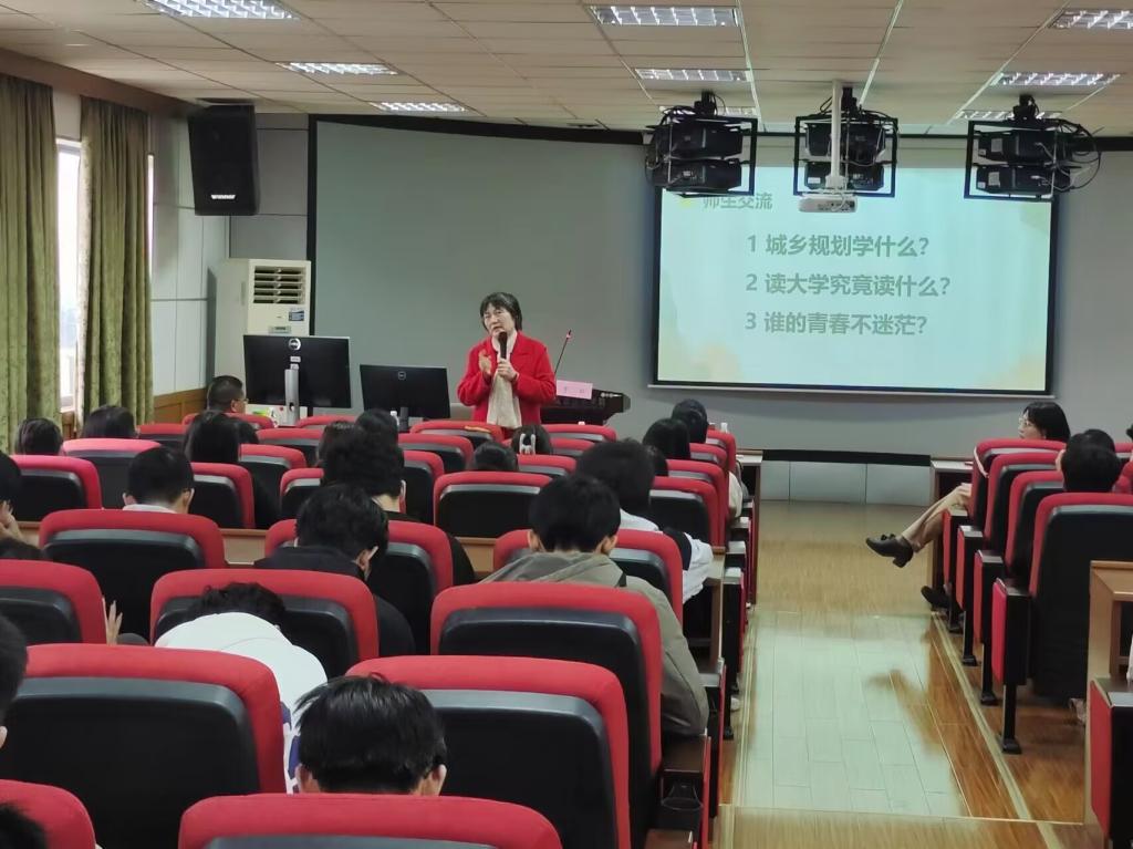 讲座现场,李敏老师围绕“桂林世界级旅游城市与城乡规划人才需求”的内容,结合自身行业经验与同学们分享了城乡规划的工作内容、就业前景和自己的工作、学习体会。吴建学老师为同学们介绍了我校城乡规划专业的办学历史、特色和开设的相关课程,教研室老师们围绕“城乡规划怎么学?”“大学究竟读什么?”“谁的青春不迷茫?”三个问题,分别从城乡规划的学习内容和学习方法、专业就业前景、大学生的综合能力培养、大学期间的职业规划等方面为同学们答疑解惑,并探讨了行业未来面临的机遇与挑战,为在座的学生们打开了一扇深入了解城乡规划专业、行业动态和个人职业规划的窗口。