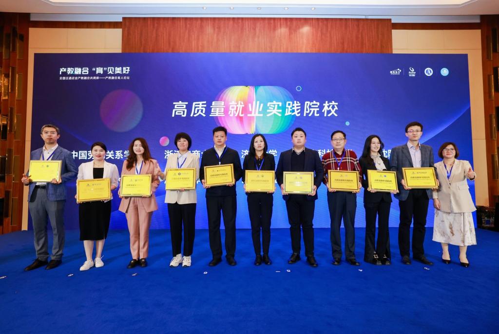 此次论坛主题为“产教融合‘育’见美好”,由锦江国际集团牵头主办,全国100余所院校参加,就校企共育实践、校企合作新模式等多元议题进行了深入探讨,旨在构建人才链与产业链紧密结合的新型合作模式,共育新质生产力,培养具备国际视野、专业素养和人文关怀的新时代酒店业精英,加快形成校企优势互补、产教高度融合发展格局。论坛设置了颁奖授牌环节,学院获评“高质量就业实践院校”。