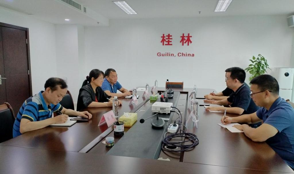 6月5日下午,beats365亚洲版王璐书记、郑文俊院长带队到桂林市科技局交流座谈,市科技局副局长唐健梅、四级调研员郑寒剑、社发科科长李斐热情接待了王书记一行。