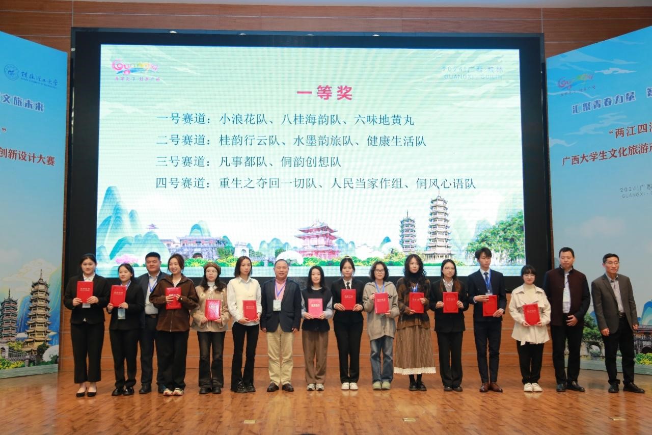 为深入学习贯彻习近平总书记视察广西时的重要讲话精神,推动广西文化和旅游产业的深度融合与发展,为打造桂林世界级旅游城市贡献力量,加强文化旅游产业学院建设,12月1日,2024年广西大学生文化旅游产品创新设计大赛决赛在桂林成功举行。
