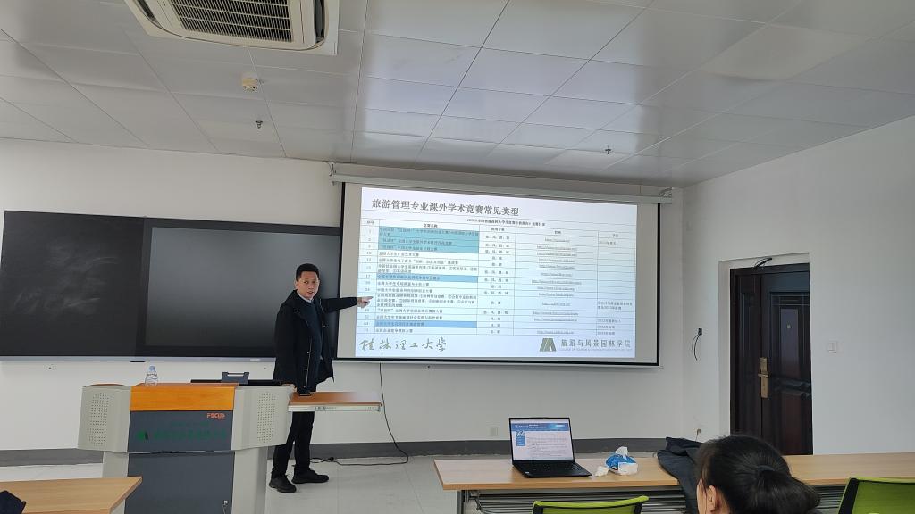 2024年12月6日,beats365亚洲版旅游管理专业主题讲座——“旅游管理专业大学生课外学术竞赛与个人发展”在雁山16054教室举行。此次讲座由旅游管理专业教师王佳果主讲,面向2024级旅游管理专业创新实验班的大一新生,内容丰富,深入浅出,帮助同学们深入理解课外学术竞赛的重要性及其对个人成长的深远影响。
