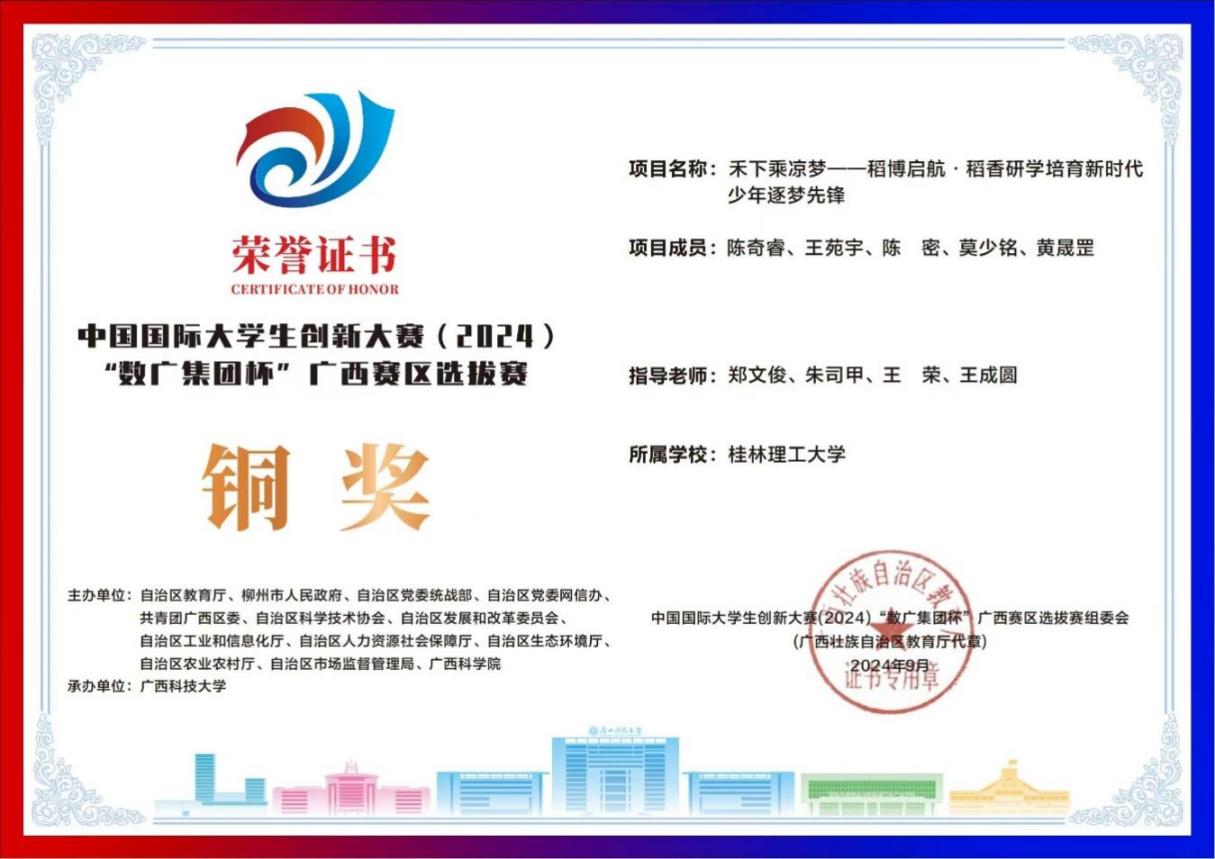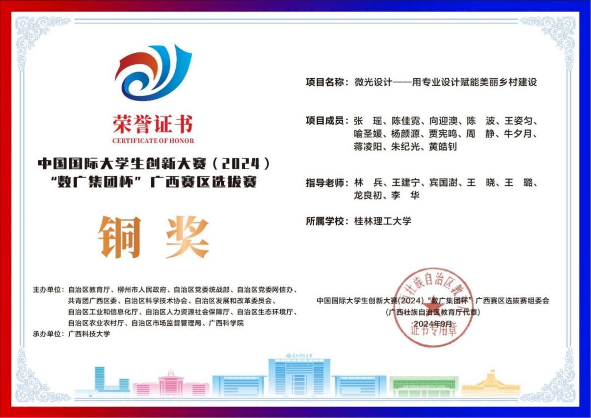 获中国国际大学生创新大赛(2024)“数广集团杯”广西赛区选拔赛铜奖