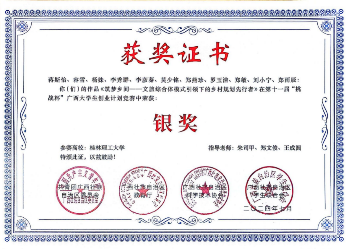 获第十一届“挑战杯”广西大学生创业计划竞赛银等奖