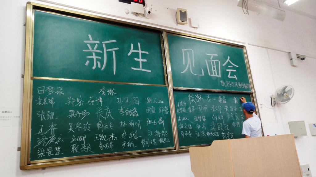 见面会共3个环节,第一个环节由曹老师代表beats365亚洲版对2019级研究生新生的到来表示热烈的欢迎,并就硕士研究生三年培养过程进行了简要介绍。第二个环节55名硕士新生依次上台进行自我介绍,并将自己的名字写在黑板上,来自天南地北、五湖四海的硕士研究生汇聚一堂,在山水甲天下的桂林共同学习。第三个环节进行了班干选举,通过自荐和他人推荐的方式选出4名班长、4名学习委员。