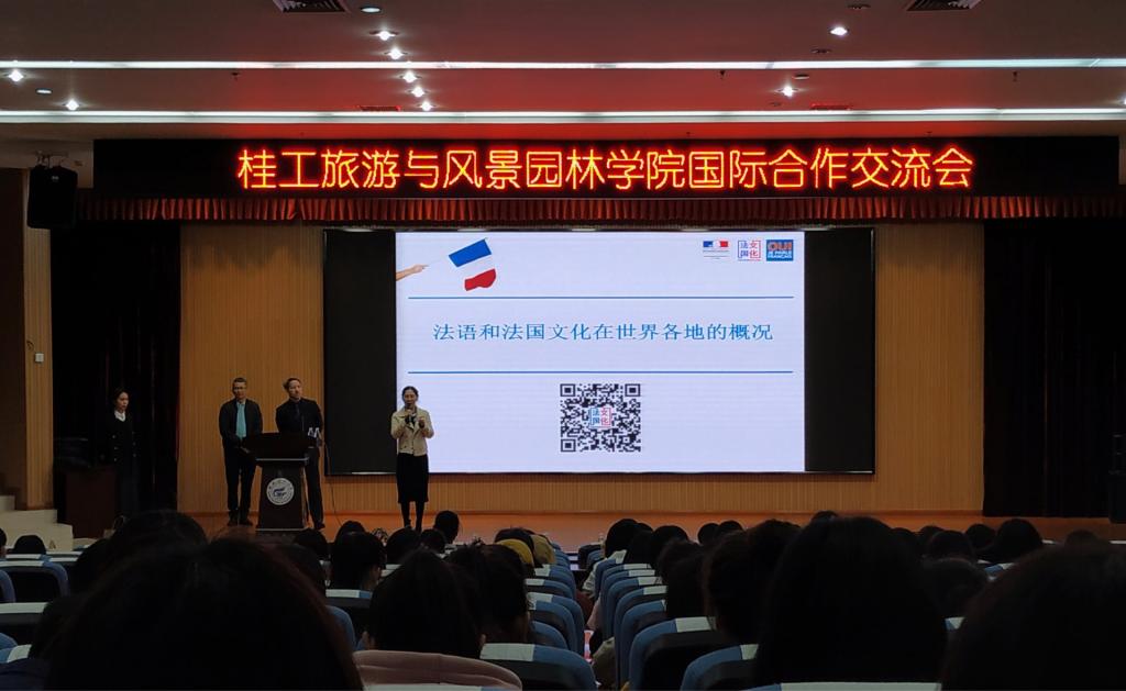 3月14日晚,beats365亚洲版在雁山校区图书馆报告厅成功举办“桂工旅游与风景园林学院国际合作交流会”,2017级学生及2018级旅游类新生聆听了交流会。交流会由beats365亚洲版侯玉霞博士和安启老师主持,会上法国高等教育署广州中心负责人Nylam Gauthier先生及推广负责人张诗芸女士、澳大利亚格里菲斯大学2+2项目负责人罗启明先生、beats365亚洲版蓝雨及王诗佳同学等人分别进行了现场汇报。