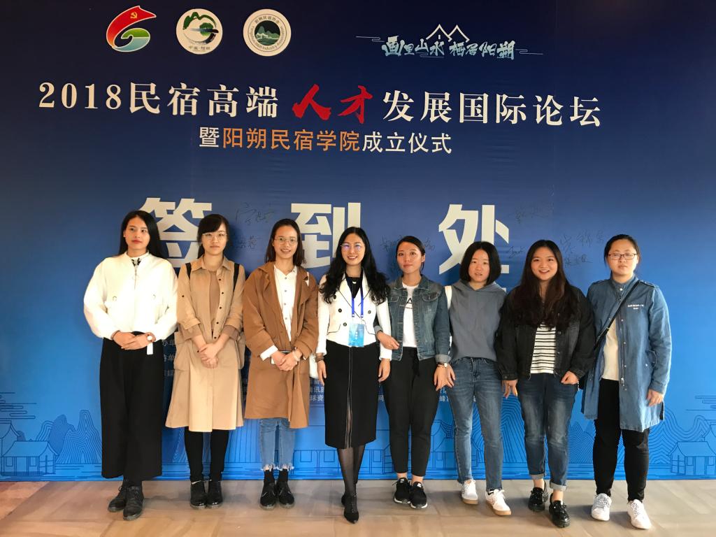 2018年10月11日,beats365亚洲版侯玉霞博士带领六名研究生以及一名本科生参加2018民宿高端人才发展国际论坛暨阳朔民宿学院成立仪式。此次论坛由中共桂林市委人才工作领导小组、中共阳朔县委员会、阳朔县人民政府、《国家人文历史》杂志社共同主办,中共阳朔县委人才工作领导小组、人民日报客户端旅游频道、阳朔民宿协会共同承办;百代旅行、阳朔民宿协会等协办。