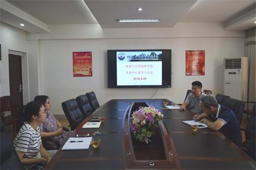 会上,学院党委书记王璐组织大家学习了党中央召开全国教育大会上习近平总书记重要讲话精神,教育部《关于高校党建工作重点任务》、《李国忠书记在学校庆祝建党97周年“不忘初心、牢记使命”主题党日活动上的讲话》、《关于开展二级学院纪委设置相关工作的通知》等相关会议及文件通知精神。
