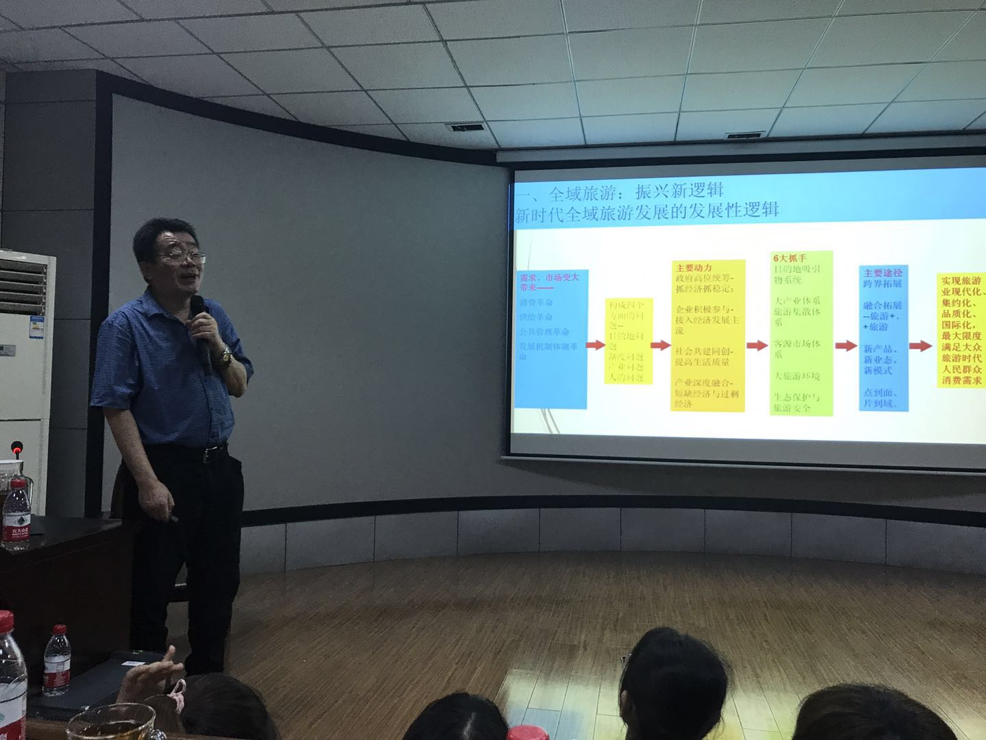 6月3日下午,应beats365亚洲版邀请,来自云南财经大学的明庆忠教授在我校雁山校区致远楼04616先后为beats365亚洲版师生做了题为“全域旅游与旅游强省建设”的学术报告。报告中,明庆忠教授从市场需求、主要动力、主要途径等方面解析了全域旅游的发展逻辑,并从我国新时代的特点诠释了全域旅游的意义。本次学术报告由吴忠军院长主持,有百余名beats365亚洲版师生聆听。与会师生对全域旅游的内涵有了更深的认识,并针对全域旅游研究选题、新机构改革对旅游从业者的影响等方面与明教授做了交流对话。
