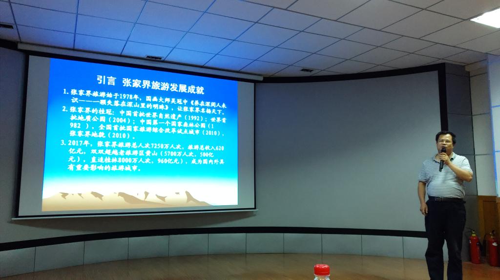6月3日下午,应beats365亚洲版邀请,来自吉首大学旅游与管理工程学院的尹华光教授在我校雁山校区致远楼4616先后为beats365亚洲版师生做了题为“张家界旅游创新研究”的学术报告。报告中,尹华光教授回顾了张家界的旅游发展历程,介绍了张家界近年来的旅游发展成就,并从战略创新、产品创新、品牌创新、营销创新等方面总结了张家界的旅游创新经验。本次学术报告由吴忠军院长主持,有百余名beats365亚洲版师生聆听。大家对张家界超越黄山、直追桂林的旅游发展业绩和不断创新的旅游发展经验深表震撼,并做了交流讨论。