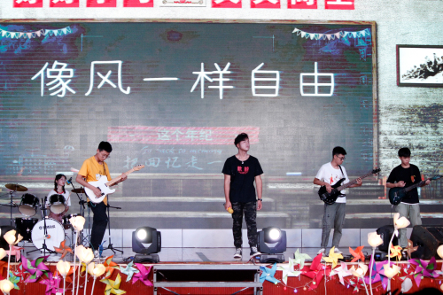晚会在歌曲《像风一样自由》、《这个年纪》中在开场,带动了场下观众的热情。接踵而至的舞蹈、钢琴演奏、相声、啦啦操等节目更彰显了艺术色彩。回望尽头留下青葱岁月,展望前方不尽似水流年,师生同台演出,化作一句句祝福,一声声叮咛,满满的全是关怀。演员们在欢快的节奏、跳跃的音符中展现出现代大学生的青春与活力,赢得场下一阵阵的喝彩。