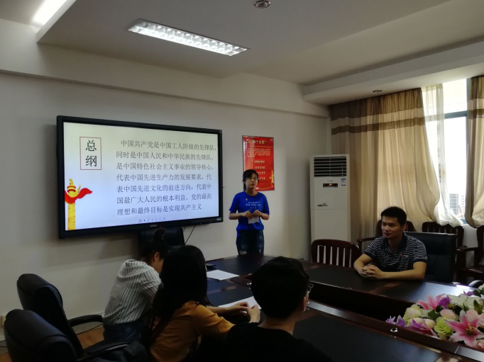 首先,在毕业生党员负责人陆丽洁同志的带领下,党员同志们庄严宣誓,重温了入党时刻。其次,党员们一起重读了党章,再次温习党员的义务与权利、党员的纪律等,提醒党员们不要违反国法党纪,争做一名优秀党员。最后,党员们一同观看了关于“老山精神”学习视频,深刻感受到“国家至上、人民至上、奉献至上”的“老山精神”,促使党员们要不断加强自身党性修养,不忘自身肩负的责任和义务。