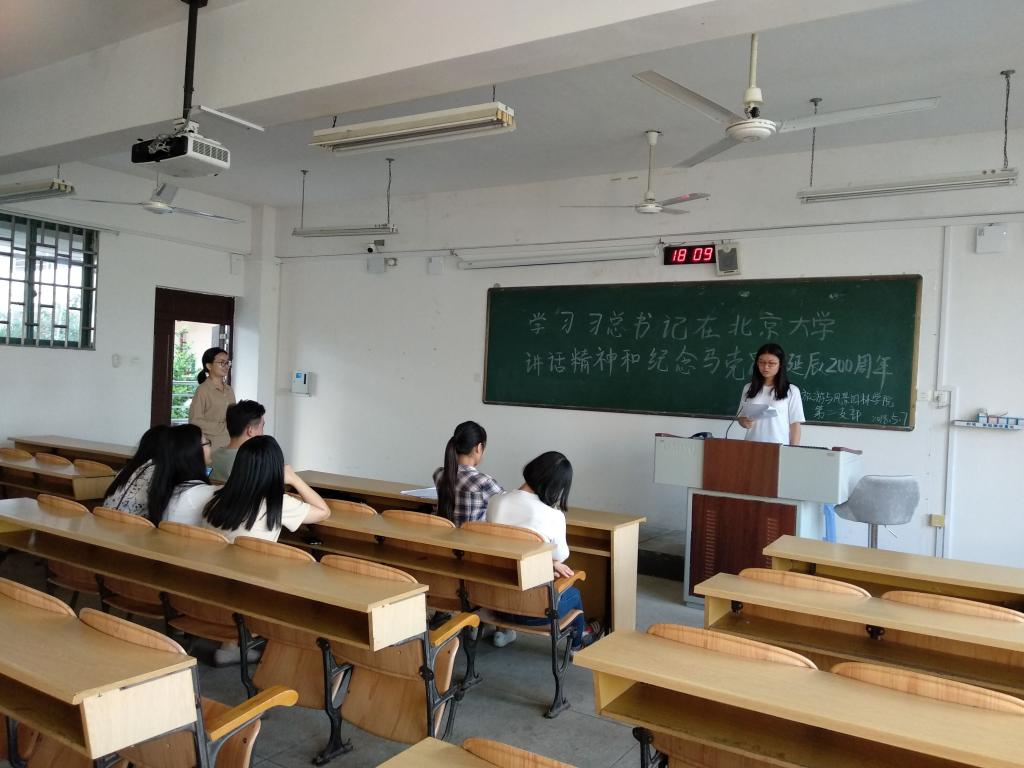 2018年5月7日下午18:00,beats365亚洲版本科生第二党支部在雁山校区05206教室召开了“习近平总书记在北京大学师生座谈会上和纪念马克思诞辰200周年大会的讲话精神”学习会议。会议由支部书记唐名丽老师主持。