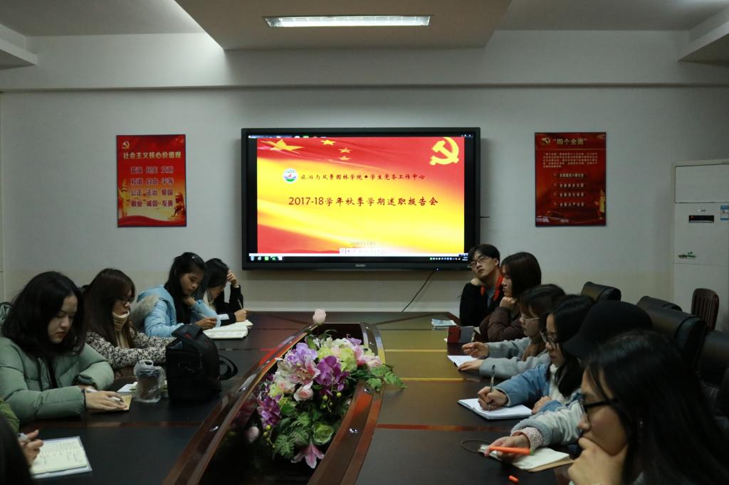 2018年1月5日18:20,旅游与风景园林学院学生党务中心在04509会议室召开了2016-2017年度述职报告会,全体成员参加了会议,会议由党务中心负责人张珍琦的主持。