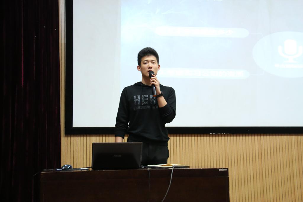 此次交流会邀请了在各个不同单位实习的优秀实习生代表,刘承伟、李子豪、于苗、陈淑泳、赵真珍、陈丹六名同学就自己为期半年的生产实习进行交流。他们主要通过PPT展示及演讲的方式向在场的同学们介绍他们的实习单位,分享实习期间的工作、生活,也总结了在实习期间的感悟与收获,最后也对同样即将面临实习的同学们提出许多实习建议。包括明确自身实习目的,做好实习前期准备,端正实习心态,注重培养团队意识培养,要多学多问多思多总结等。