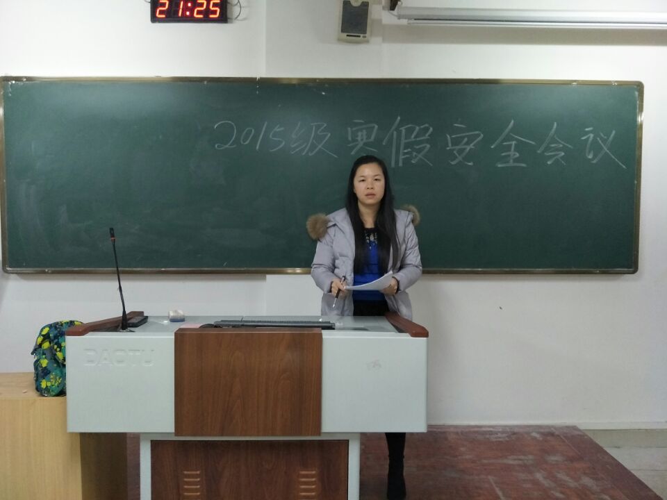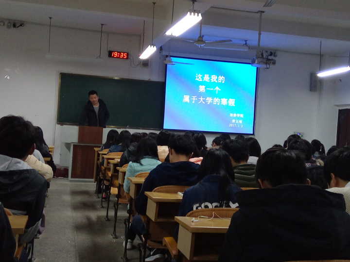 首先,各年级辅导员老师就放假与开学时间、离校前注意事项、假期注意事项、回家返校途中等注意事项逐一进行了讲解。其次,特别强调了离校前务必要仔细检查宿舍水电是否关闭、提高防传销的意识和辨别各类信息真假的能力。最后,各年级辅导员告诫大家要利用寒假时间做好上学期学习总结和下学期学习计划,抽时间多读书,珍惜寒假学习时间。