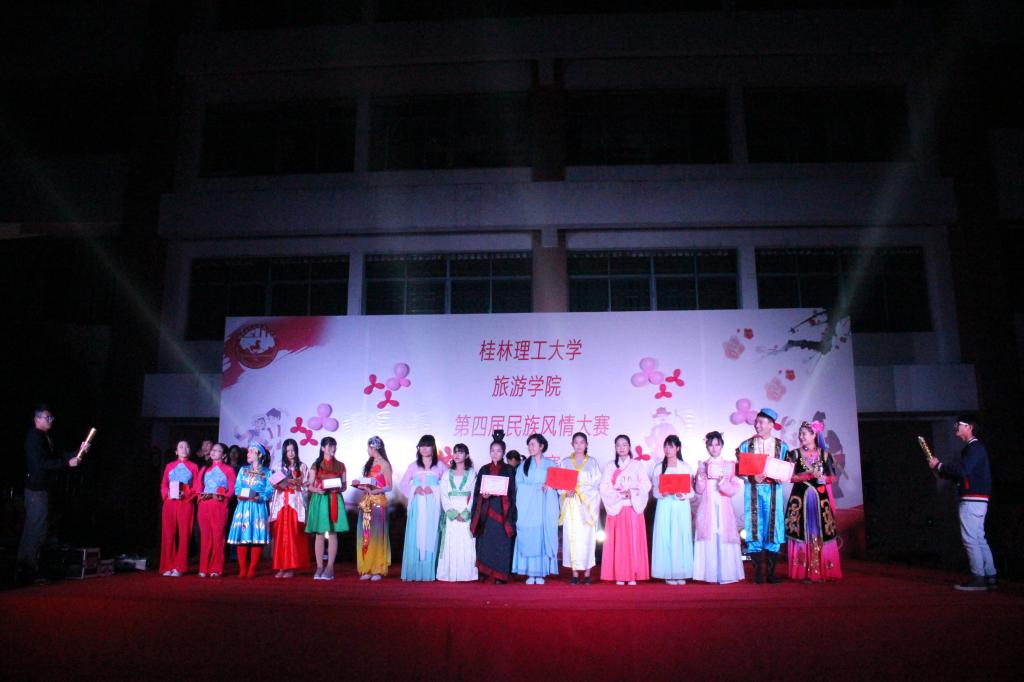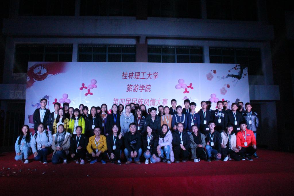 为弘扬民族传统文化、传承民族特色经典、加深各民族同学间的情感,促进和谐校园的形成, 12月10日晚19:00点,由旅游学院主办、旅游学院团委学生会承办的“第四届民族风情大赛总决赛”在我校雁山校区三栋广场举行。旅游学院民族学与旅游经济教研室石春燕博士、团委书记李少华、辅导员唐名丽、黄小华、张露萍、唐玉福莅临比赛现场并担任评委。
