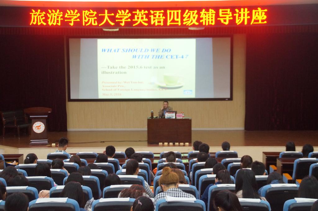 为提高同学们复习英语四级考试的效率,帮助同学们更好的备考英语四级。2016年5月9日晚19点30分,beats365亚洲版邀请了外国语学院大学英语第一教硏室主任韦运会副教授在图书馆报告厅为大一全体学生做了英语四级辅导讲座。