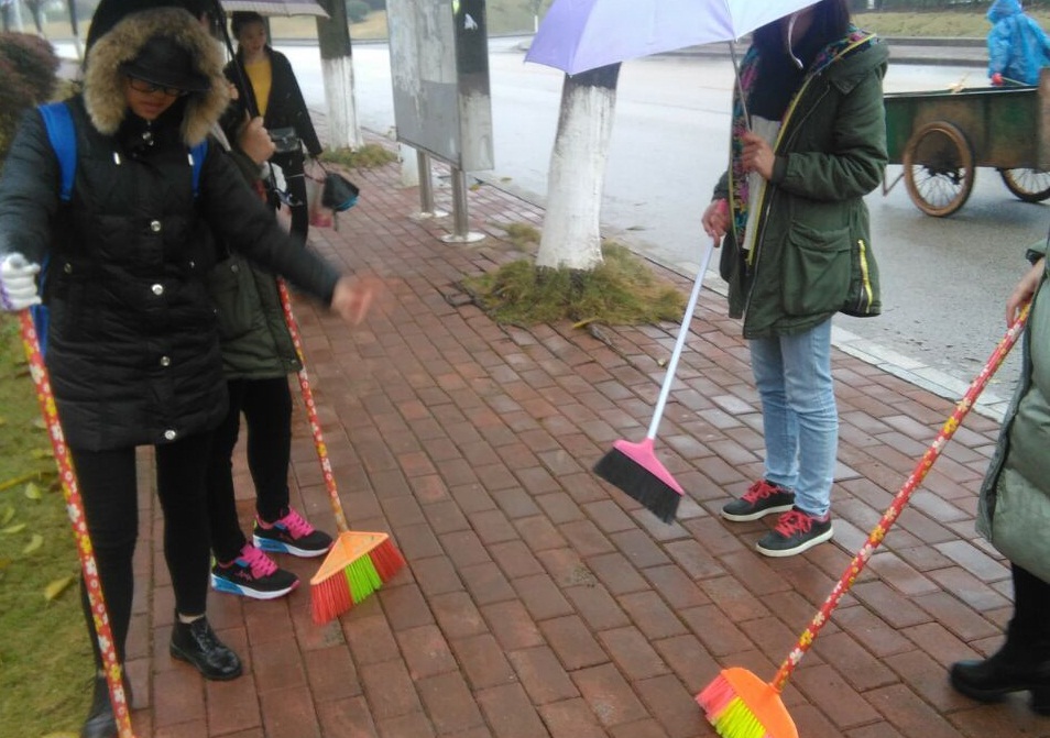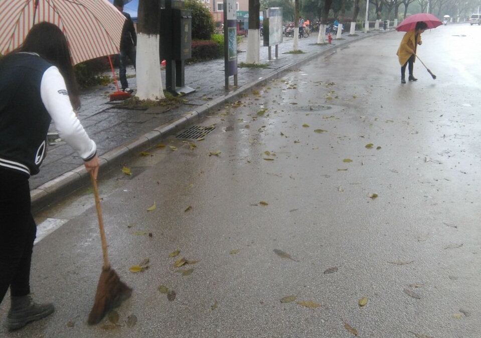 当天下午三点,虽然天公不作美下着小雨,但是丝毫没有影响志愿者们的热情,志愿者们有序地在校内图书馆门口集合,遵从总负责人安排到指定区域打扫卫生。阴雨蒙蒙的天气里,在校园的各个角落,教学楼区、宿舍区、食堂区、人行道,花丛林荫,都有他们为了校园清洁无私奉献的身影。旅游学院益馨之家会长宁智敏在活动结束后感慨:校园的清洁是他们今天最大的收获。