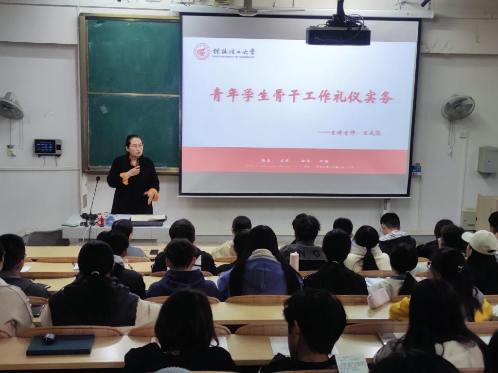 仪式在庄严隆重的国歌声中拉开帷幕,在场全体人员肃然起立共唱国歌。开班仪式上,王成圆老师为本学期培训班致辞,她指出作为新时代的青年,我们需要及时抓住机遇,勇担时代重任,奋发图强、创造有意义的人生。随后,王成圆老师介绍了本次训班授课内容和流程,强调了举办此次举办培训班的重要性,希望全体青马班成员要不断提高自身的理论素养,坚定理想信念。最后,王成圆老师为在场的学员第一讲的授课,主题是:青年学生骨干工作礼仪实务。围绕基本行为礼仪、会场布置等三个方面对学生干部进行培训。
