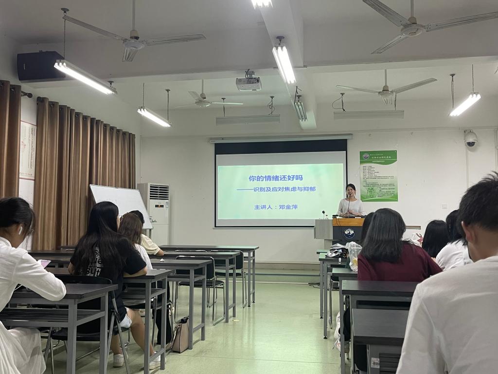 为在全校学生中普及心理健康知识、提升心理健康素养,2022年6月7日19:00,我院邀请学校心理中心邓金萍老师开展主题为“你的情绪还好吗?”——识别及应对焦虑与抑郁的心理健康知识大讲堂。我校近百余名学生参加。